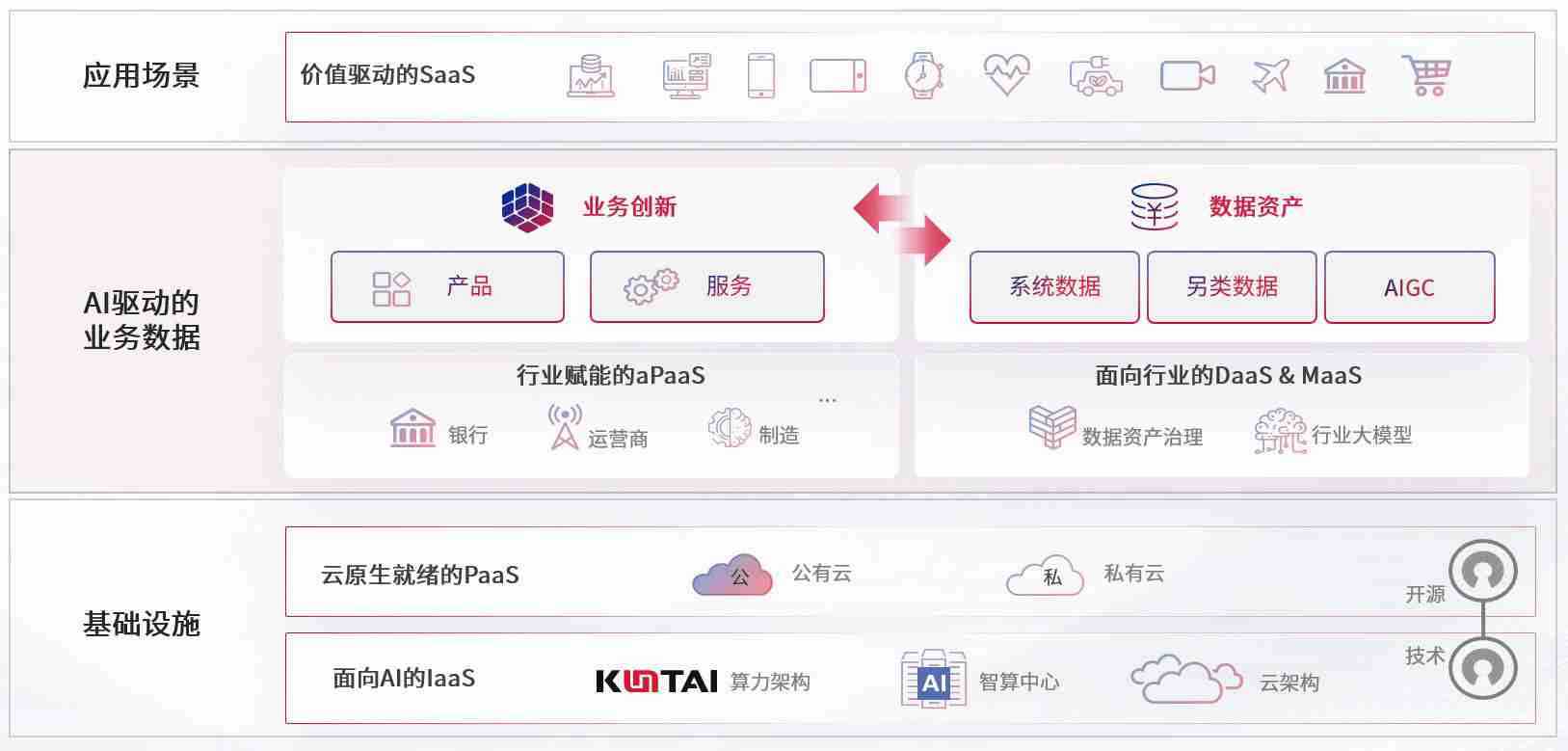 数字时代,,,围绕企业数字化转型的关键要素,,,,亚星会员数码开创性的提出数云融合战略和技术体系框架,,着力在云原生、、、、数字原生、、、、AI原生和信创产业上架构产品和服务能力,,,,为处在不同数字化转型阶段的快消零售、、汽车、、、金融、、、、医疗、、、政企、、、教育、、运营商等行业客户提供泛在的敏捷IT能力和融合的数据驱动能力,,构建跨界融合创新的数字业务场景和新业务模式,,助力企业级客户建立面向未来的核心能力和竞争优势,,全面推动社会的数字化、、智能化转型升级。。。